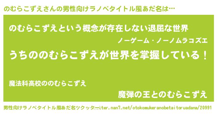 | 女子向けラノベタイトル風あだ名 | 『男装のむらこずえの憂鬱な任務』 |