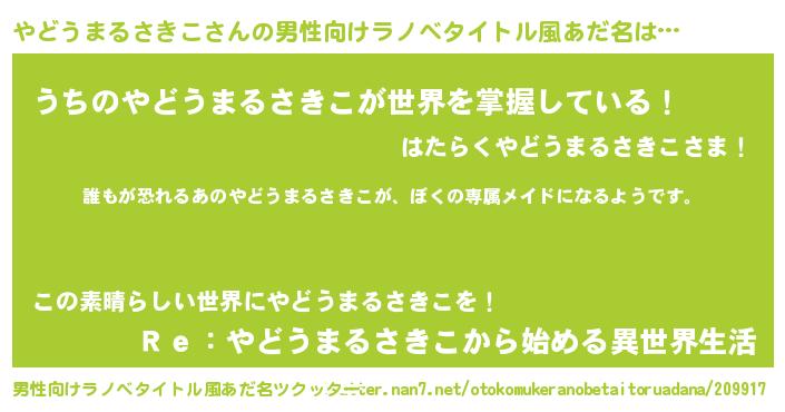 | ヘコむあだ名 | 『やどうまるさきこ(小並感)』『やど太郎』 |
