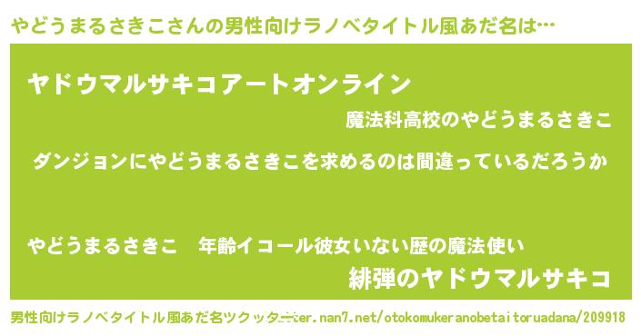 | 女子向けラノベタイトル風あだ名 | 『やどうまるさきこは平凡を望む』 |