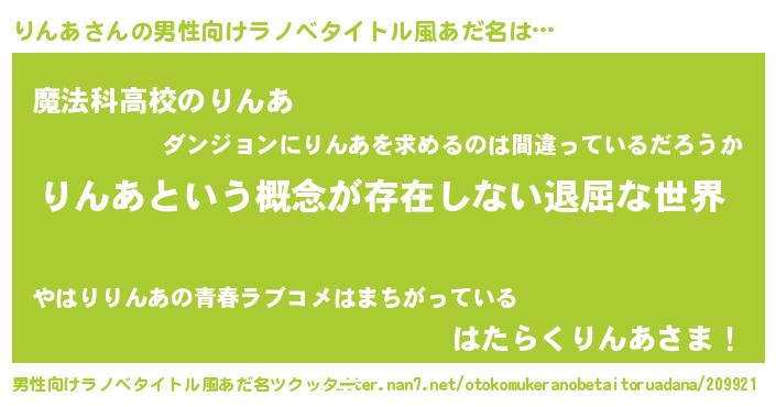 | 伝説のあだ名 | 『古より伝わる吟遊詩人りんあ』 |
