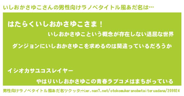 | 女子向けラノベタイトル風あだ名 | 『いしおかさゆこの卵を拾いまして』 |