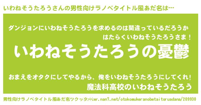 | ヒーロー風カッコイイあだ名 | 『スーパーイワネソウタロウ』 |