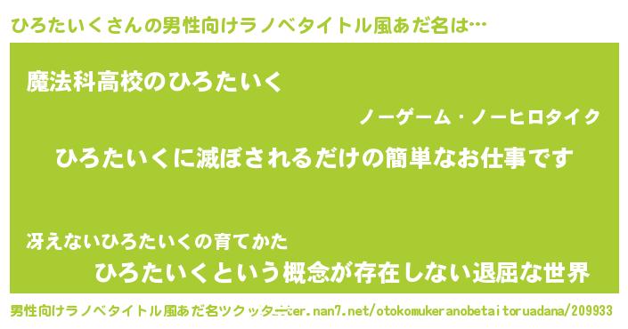 | 女子向けラノベタイトル風あだ名 | 『横柄ひろたいくと宰相陛下』 |