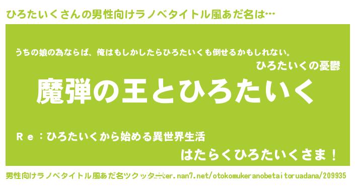 | 意味不明あだ名 | 『住所不定無職ひろたいく(2歳)』 |