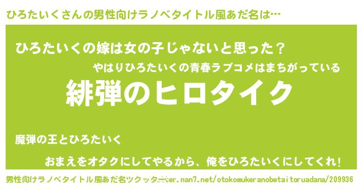 | ヒーロー風カッコイイあだ名 | 『暗黒騎士ヒロ』『慈愛の使者ひろたいく』 |