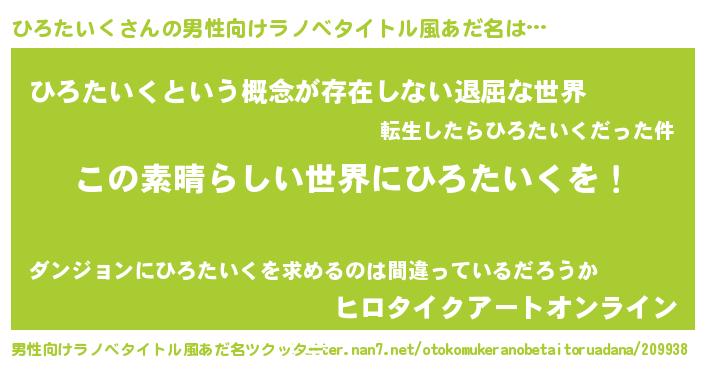 | 女子向けラノベタイトル風あだ名 | 『乙女ゲームの破滅フラグしかない悪役ひろたいくに転生してしまった…』 |