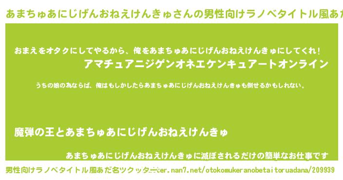 | 意味不明あだ名 | 『あまちゅあにじげんおねえけんきゅフォーエバー』 |