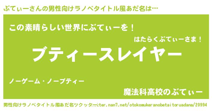 | ヒーロー風カッコイイあだ名 | 『仮面ブテダー』『サイバー戦士ブティー』 |