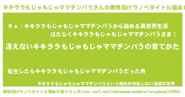 | 胡散臭い通販商品みたいなあだ名 | 『テレビで話題の高麗人参…その名も「キキララもじゃもじゃママチンパう」』 |