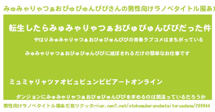 | 胡散臭い通販商品みたいなあだ名 | 『伝統あるサプリメント…その名も「みゅみゃりゃつぁおびゅびゅんぴぴ」』 |