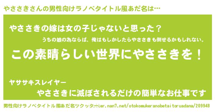 | 意味不明あだ名 | 『住所不定無職やささき(40歳)』 |