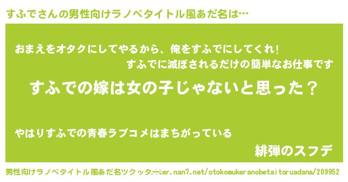 | 恥ずかしいあだ名 | 『スフリンリン』『ボンバーヘッドすふ』 |
