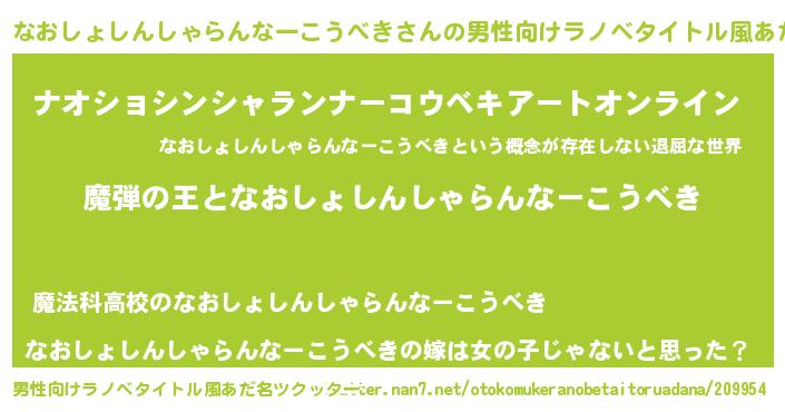 | 女子向けラノベタイトル風あだ名 | 『なおしょしんしゃらんなーこうべきが死なない童話 林檎のなおしょしんしゃらんなーこうべきの診療簿』 |