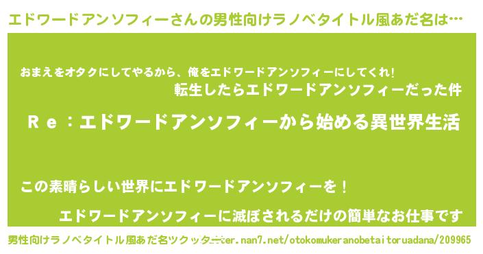 エドワードアンソフィーさんの男性向けラノベタイトル風あだ名をツクッター!