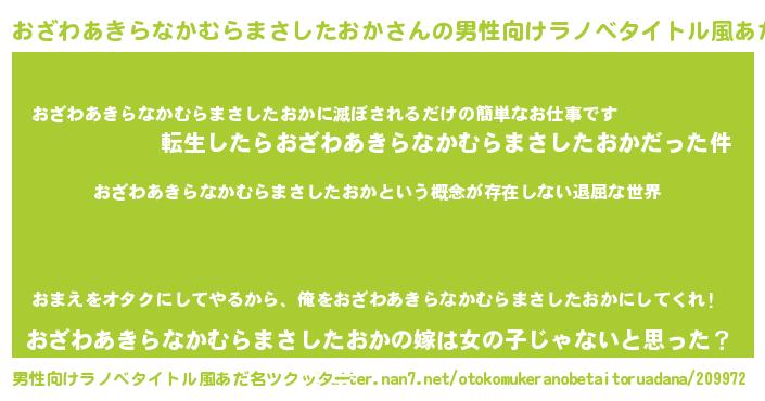 | 女子向けラノベタイトル風あだ名 | 『異世界で失敗しない100のおざわあきらなかむらまさしたおか』 |