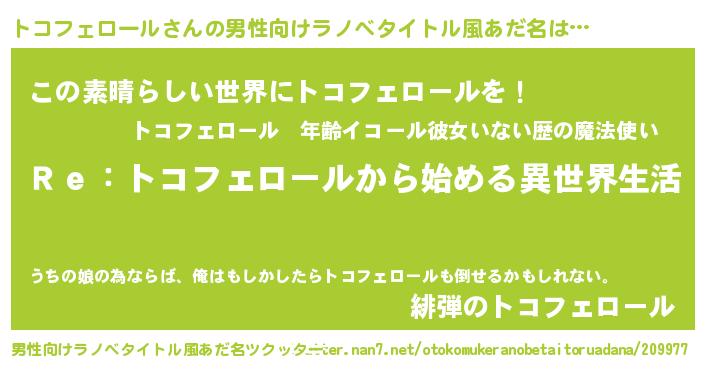 | 意味不明あだ名 | 『自称トコフェロール』 |