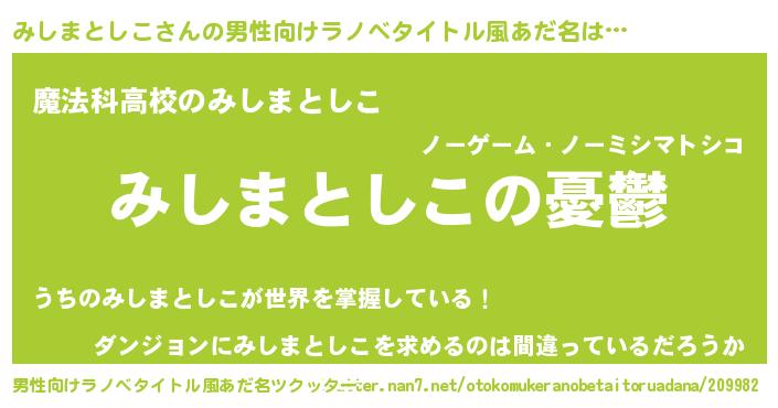 | 胡散臭い通販商品みたいなあだ名 | 『必ず成功する水晶球…その名も「みしまとしこ」』 |