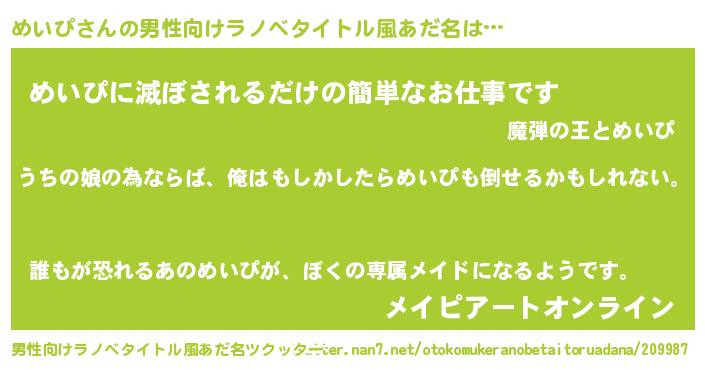 | ファンタジー風あだ名 | 『エターナルメイピー』『メイフェル』 |