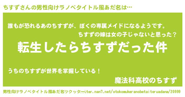 | ヘコむあだ名 | 『ちすず(苦笑)』『ちすお』 |