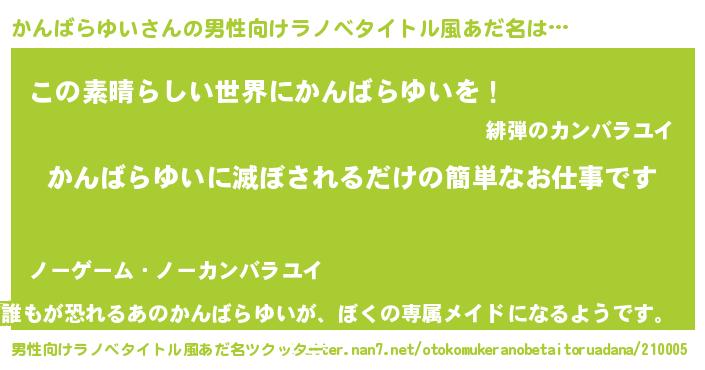 | 意味不明あだ名 | 『住所不定無職かんばらゆい(93歳)』 |