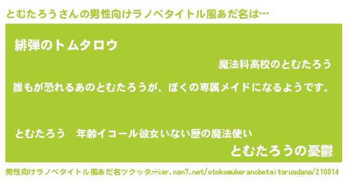 | 胡散臭い通販商品みたいなあだ名 | 『前代未聞の健康食品…その名も「とむたろう」』 |