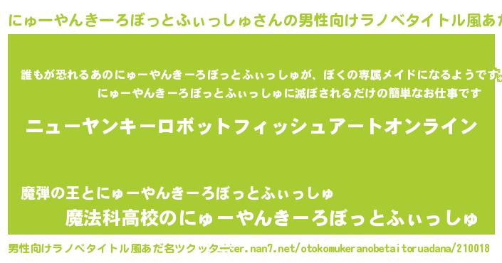 | 欧米人風あだ名 | 『マイケルにゅーやんきーろぼっとふぃっしゅ』 |