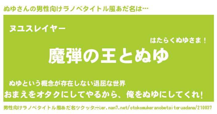 | 女子向けラノベタイトル風あだ名 | 『乙女ゲームの破滅フラグしかない悪役ぬゆに転生してしまった…』 |