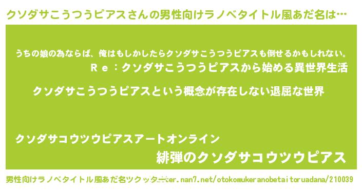 | 意味不明あだ名 | 『永久保存クソダサこうつうピアス』 |