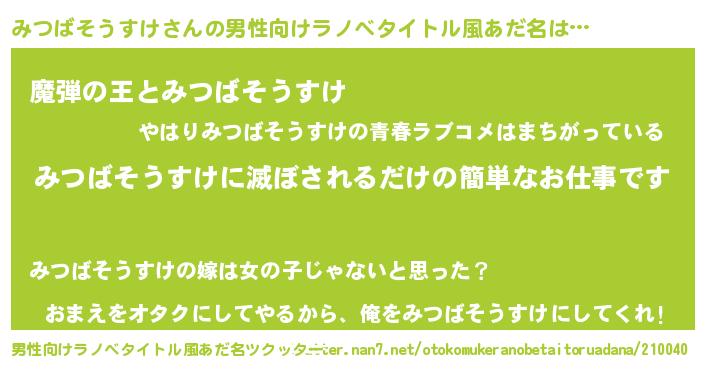 | 意味不明あだ名 | 『住所不定無職みつばそうすけ(91歳)』 |