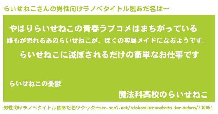 | 意味不明あだ名 | 『らいせねこフォーエバー』 |