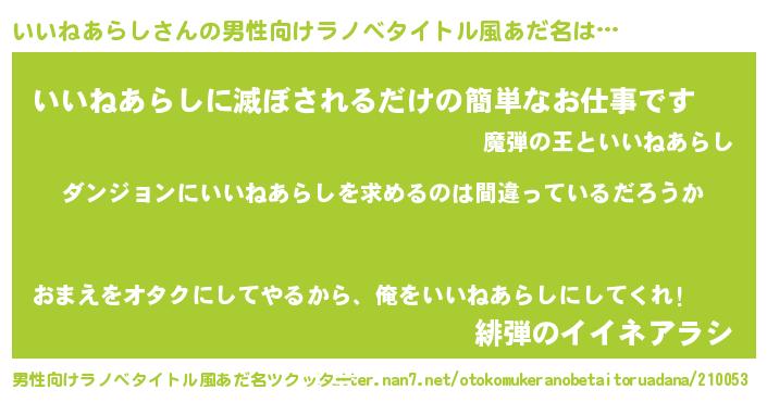 | 胡散臭い通販商品みたいなあだ名 | 『信頼と実績のペンダント…その名も「いいねあらし」』 |