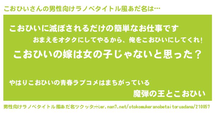 | ヒーロー風カッコイイあだ名 | 『幻影騎士コオ』『仮面コオダー』 |