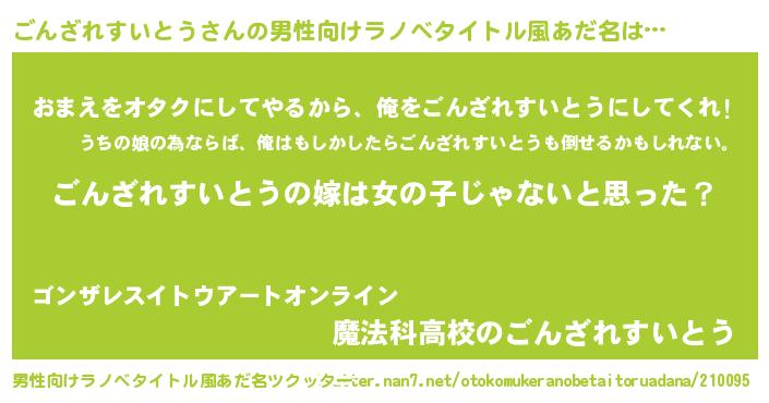 | 意味不明あだ名 | 『とにかく怪しいごんざれすいとう』 |
