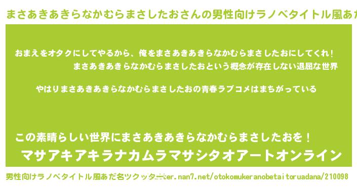 | ヒーロー風カッコイイあだ名 | 『ウルトラまさあきあきらなかむらまさしたおマン』 |
