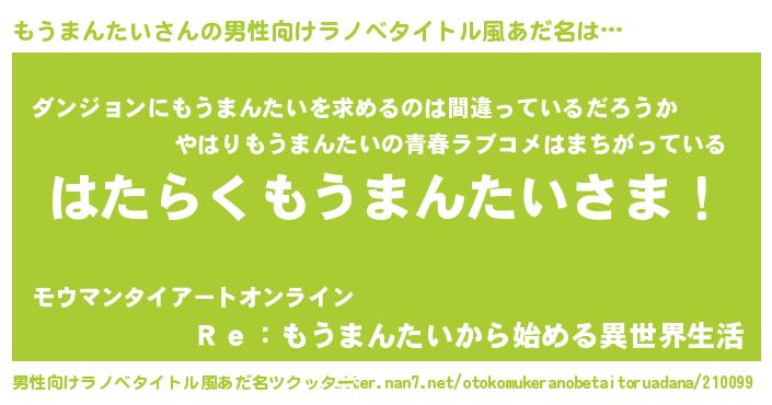 | ヒーロー風カッコイイあだ名 | 『暗黒騎士モウ』『スーパーモウマンタイ』 |