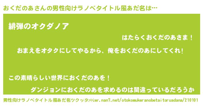 | 女子向けラノベタイトル風あだ名 | 『おくだのあ恋絵巻』 |