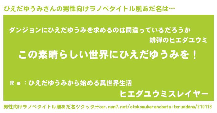 | 意味不明あだ名 | 『住所不定無職ひえだゆうみ(56歳)』 |