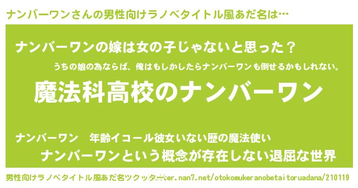 | 女子向けラノベタイトル風あだ名 | 『ナンバーワンアンティーク』 |