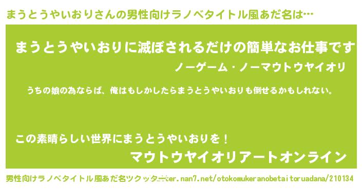 | 意味不明あだ名 | 『まうとうやいおりフォーエバー』 |