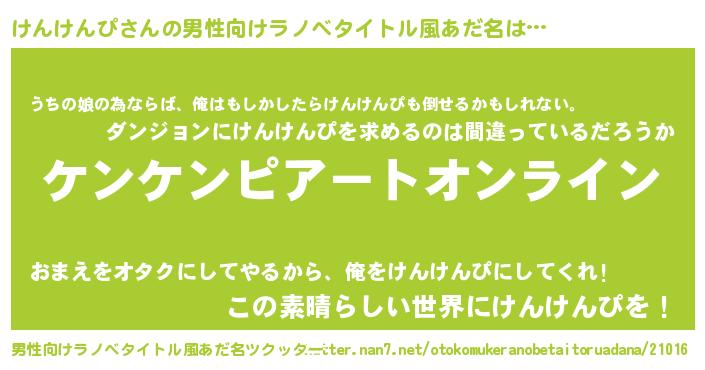 | ファンタジー風あだ名 | 『ケンフェル』『エターナルケンケンピー』 |