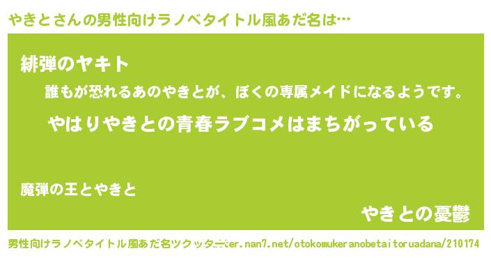 | ヒーロー風カッコイイあだ名 | 『ウルトラやきとマン』『スーパーヤキト』 |