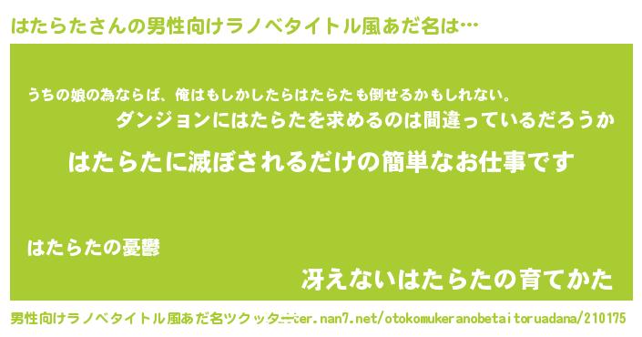 | ポケモン風あだ名 | 『ハタゴンZ』『ハタラダネ』 |