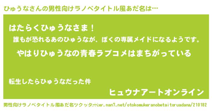 | ヒーロー風カッコイイあだ名 | 『ウルトラひゅうなマン』『ネオヒュウナ』 |