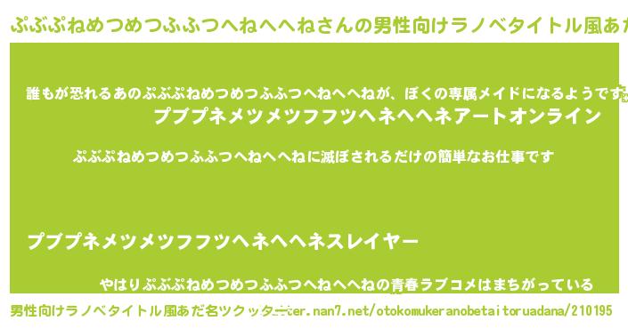 | ヘコむあだ名 | 『ぷぶぷねめつめつふふつへねへへね(遠い目)』 |