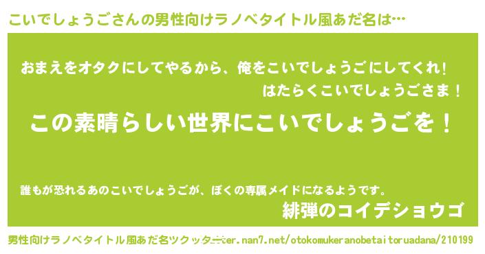 | 意味不明あだ名 | 『住所不定無職こいでしょうご(59歳)』 |