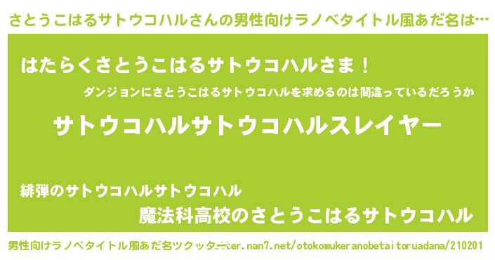 | 欧米人風あだ名 | 『トリンドルさとうこはるサトウコハル』 |