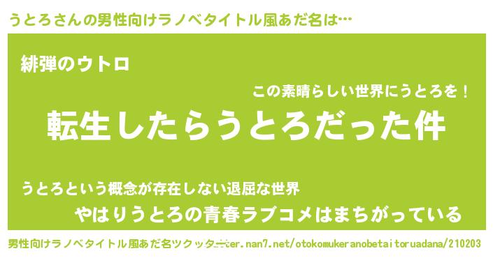 | ヒーロー風カッコイイあだ名 | 『ウルトラうとろマン』『仮面ウトダー』 |