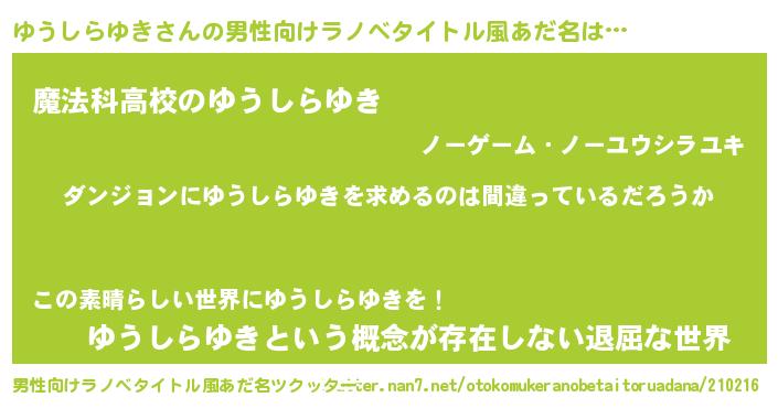 | 女子向けラノベタイトル風あだ名 | 『ゆうしらゆきは平凡を望む』 |