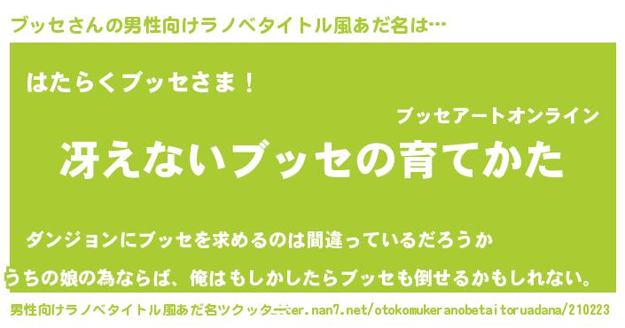 | 女子向けラノベタイトル風あだ名 | 『男装ブッセの憂鬱な任務』 |