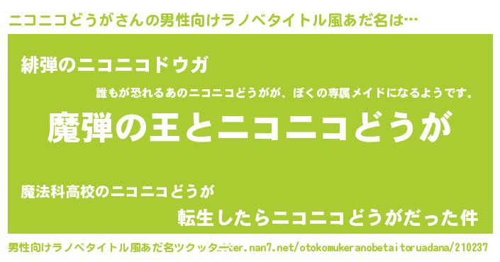| 意味不明あだ名 | 『住所不定無職ニコニコどうが(12歳)』 |
